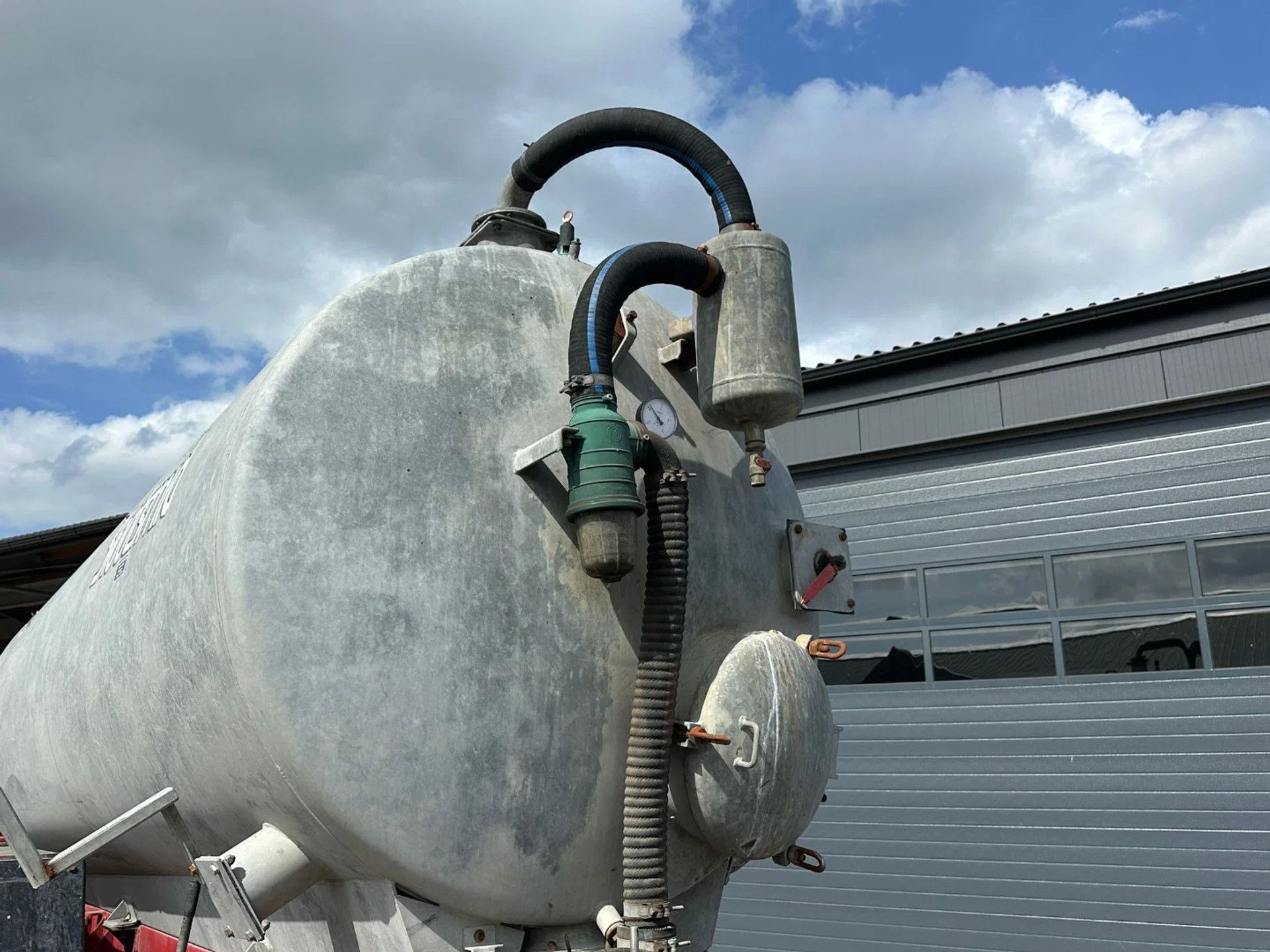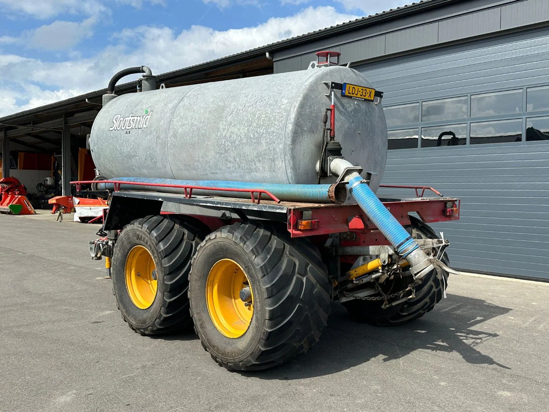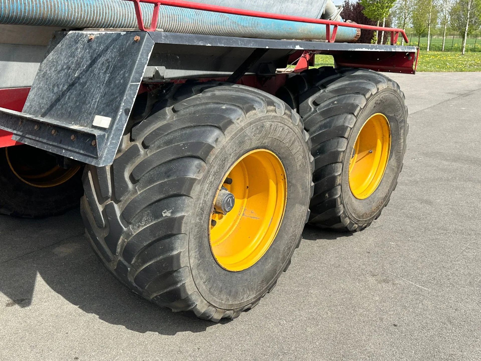Schuitemaker Perfecta 84, Capaciteit (Inhoud): 8.400 liter, Tandemas gedwongen gestuurd, Slootsmid-uitvoering, vacuümpomp, hydraulische steunpoot, Alliance 750/45R26.5 banden.
